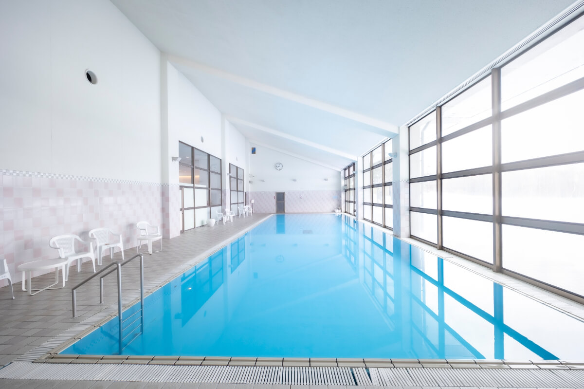 大きな室内プールもあって、こちらも宿泊者の利用は無料。しかもチェックイン前、チェックイン後も利用できる。ただし水着のレンタルはないので各自で用意しておこう。利用時間は9時〜21時まで。ジャグジーもある。