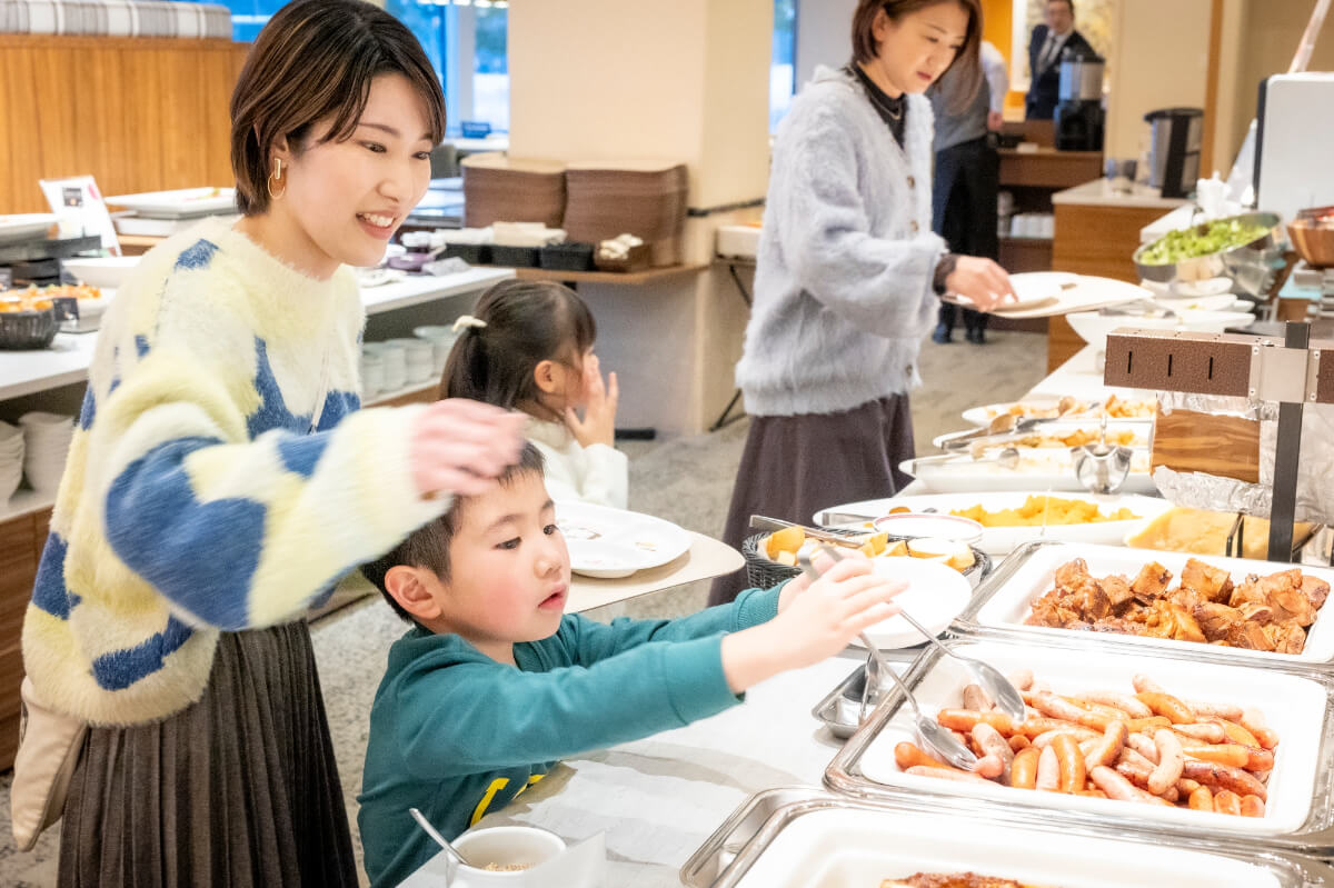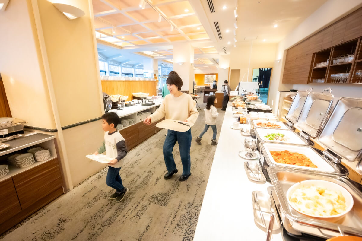 1日楽しく遊んだ疲れと、お腹がいっぱいになって子供たちは早めに就寝(笑)。起きたと思えば「お腹すいた」と、今日も元気な子供たちは、さっそく朝食のビュッフェへ。何があるのか、食べられるのかと朝から大興奮!