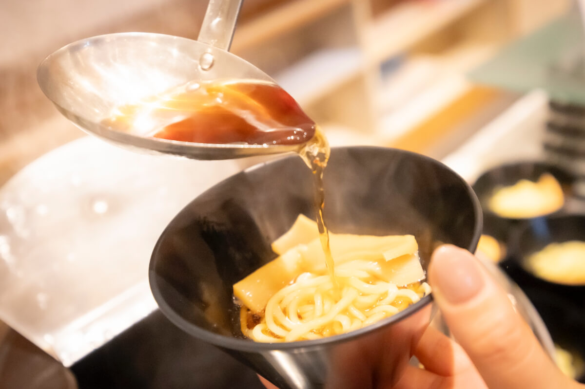 朝食ビュッフェのイチ押しは「朝ラー」。日本3大ラーメンのひとつとも言われる「喜多方ラーメン」で有名な喜多方市が、グランデコのすぐそばということもあって、福島県の文化「朝ラー」をぜひ食していただきたい。絶品のスープが最高だ!