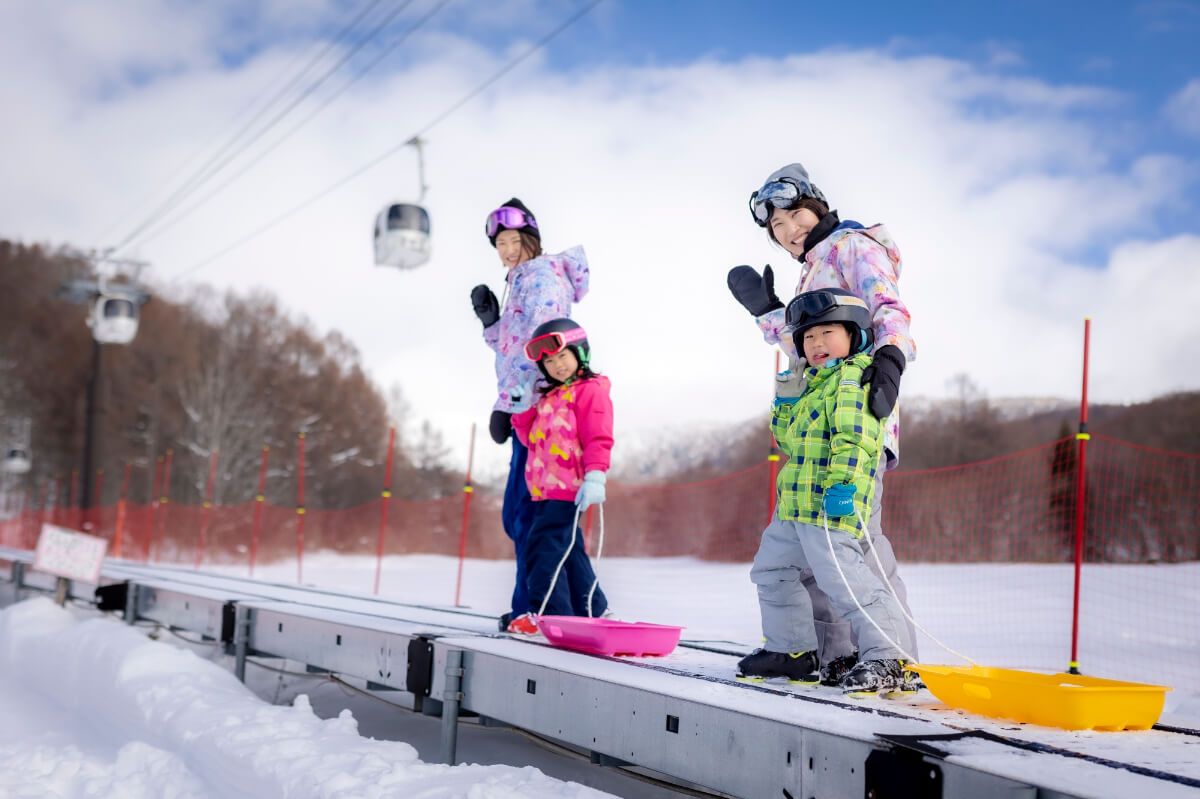 全長70mのスノーエスカレーターで、ソリやチュービングを持って上部へ移動するのも楽ちんだ。