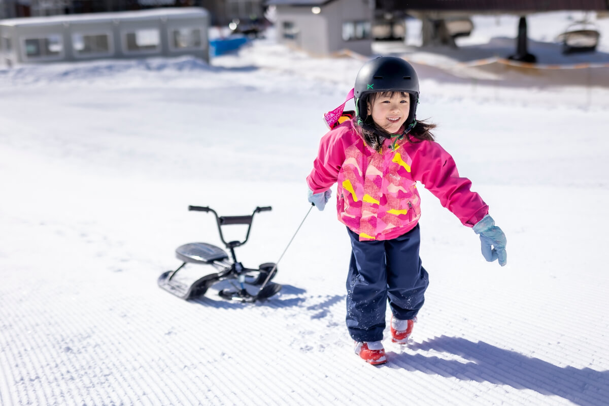 平日は遊具の貸し出しがなく、スノーエスカレーターも動いてないが、今シーズンはキッズパークのエリアを無料で開放中。自前でソリなどを持参すれば、歩いて登ることになるが自由に遊ぶことができる。尚、ホテルのレンタルコーナーでは、そりのレンタル(有料。1日700円)も用意している。