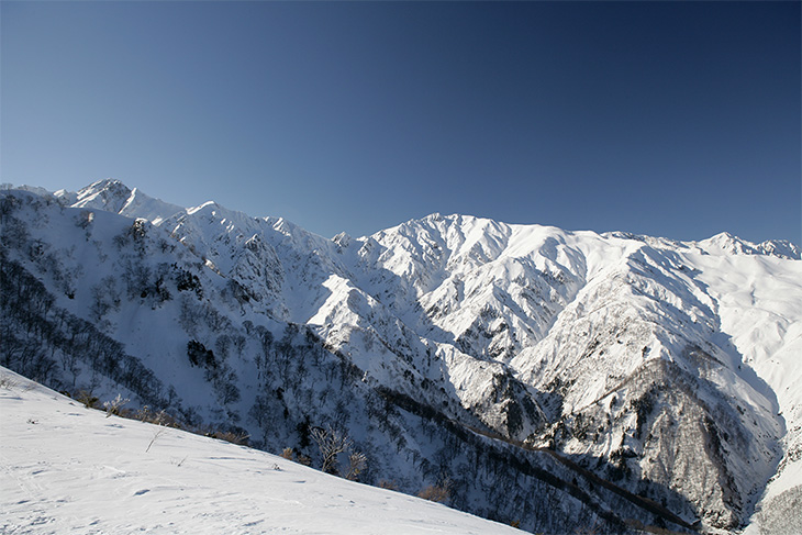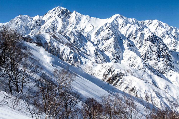 雄大な鹿島槍ヶ岳(標高2,890m)を望むロケーション抜群のゲレンデ。ノースMtとウエストMt.の2つのピークがあり、ゲレンデトップ部の標高は1,550mでダイナミックな眺望が堪能できる。トップシーズンにはパウダースノーにも恵まれる。