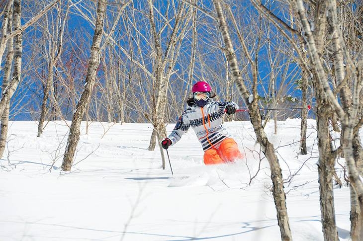 白馬エリア最大級の広大なフィールドにはワイドな緩斜面が広がり、初心者や初級者からファミリーまで安心して楽しめる。ちびっこやビギナーだけでなく、「TSUGAIKE POWDER」と呼ばれる非圧雪エリアも人気で、多くのパウダー好きからも支持されるゲレンデ。