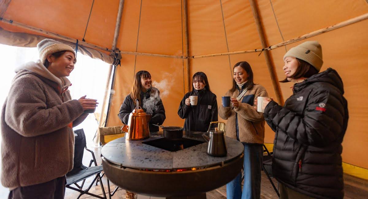 また、山頂付近につくられた「IWATAKE WHITE PARK」は、複数のアクティビティが集まったアウトドアパーク。パーク内では冬の風物詩・かまくらなどのオブジェでフォトジェニックな思い出作りができたり、インディアンの伝統的な住居を模したテント「ティピー」でくつろいだり、ドッグランで愛犬と遊べたり、スノーシューツアーに参加できたりと、多彩な過ごし方ができるコンテンツが満載です。