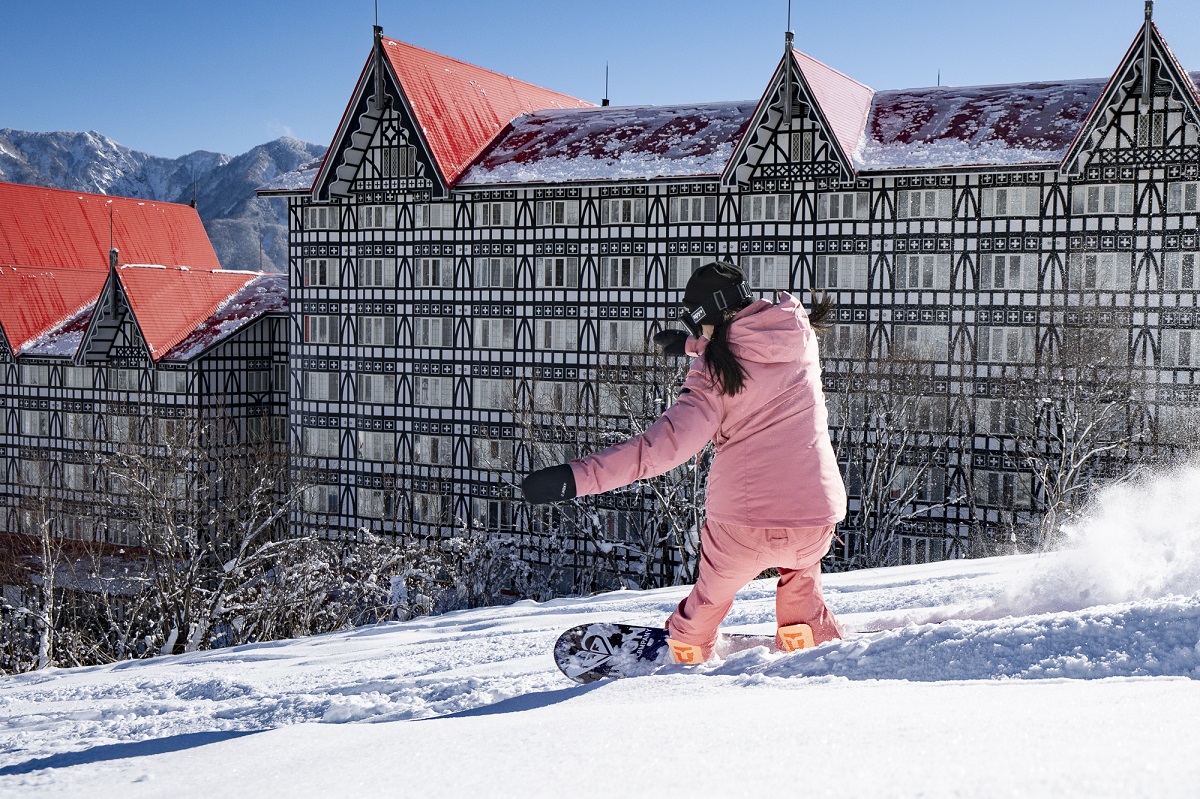 白馬コルチナスキー場は、白馬バレーのもっとも北に位置する極上の雪質が魅力のスキー場で、ゲレンデに直結したホテルは快適度もエリアトップクラスの滞在型リゾート。山道を登りついた先に見えてくるホテルは赤い三角屋根が特徴的なヨーロピアンテイストの佇まいで、まるでおとぎ話に出てきそうな世界観に、到着早々誰もが惹き込まれてしまう。