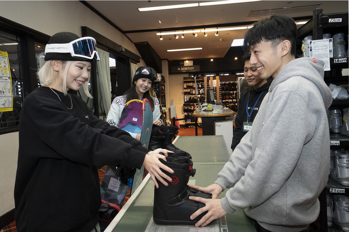 道具がなくても、もちろんホテルで楽々レンタル。すべてがホテル内の1箇所で揃うので、不慣れな人も心配無用。手ぶらで訪れて誰でも気軽にスキーやスノーボードにチャレンジできる環境が整っているから、デビューにもぴったりだ。