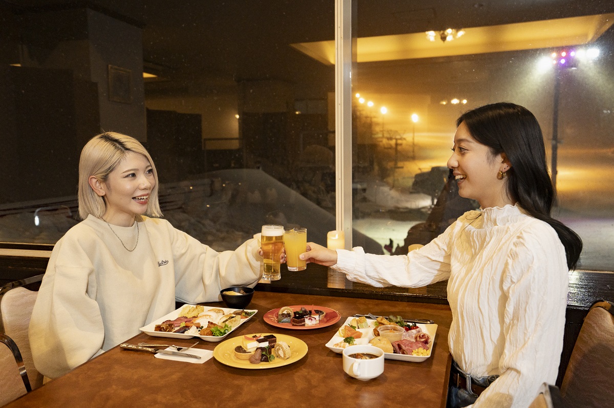 ライトアップされた幻想的な夜のゲレンデを見渡して味わう、贅沢なディナータイム。日常をすっかり忘れて、美味しいものに舌鼓を打ちながら思う存分リゾート気分を満喫できる夜は、話も弾むこと間違いナシ。