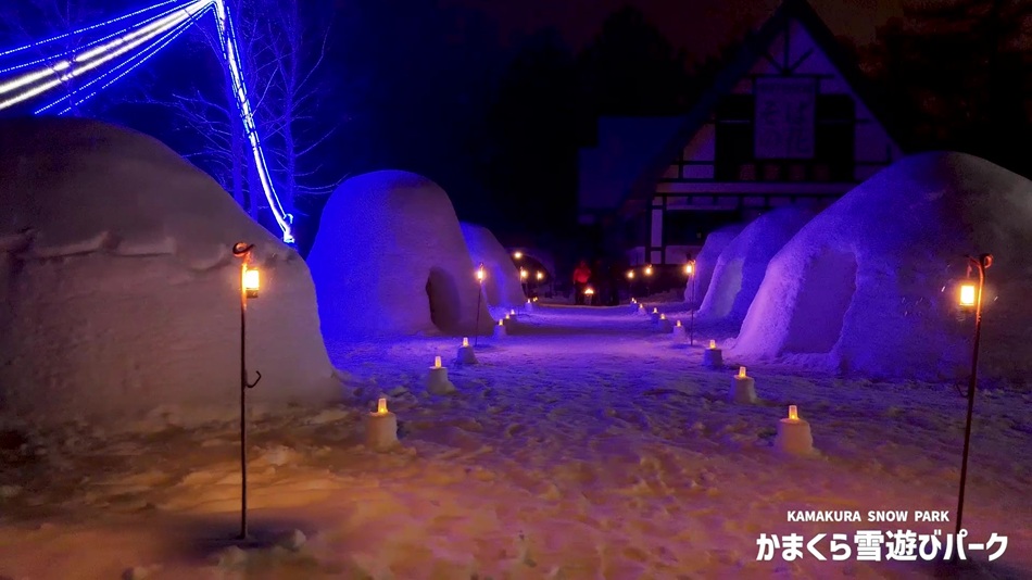 ほかにも「雪の森かんじきウォーキング」や「雪上アイスづくり」など、雪国ならではのアクティビティが充実しています。かまくら雪遊びパークは昼と夜にオープンしているので、時間帯によって変わる雰囲気も見どころです。