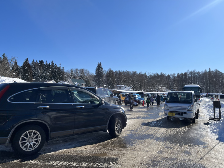 朝8時半時点、すでに大型駐車場はほぼ満車に...