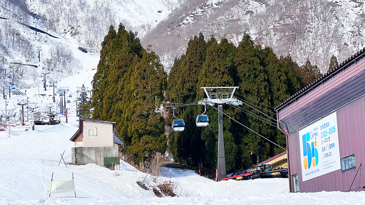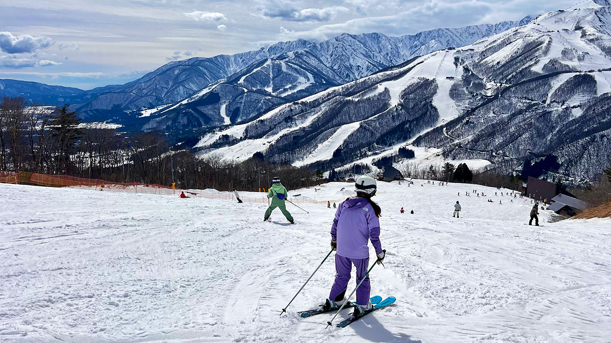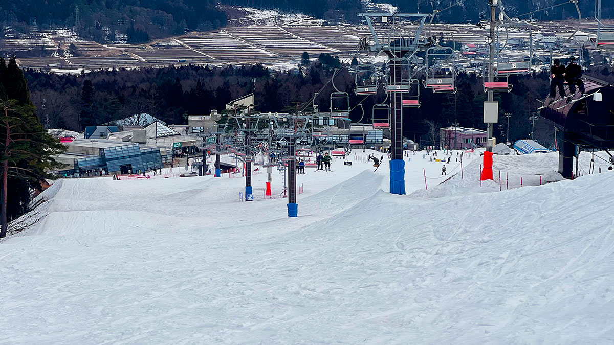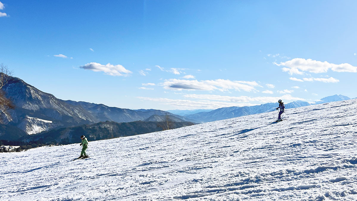 春スキーのシーズンになると、雪も緩んで初心者やスキー・スノーボードデビューにもおすすめ。メインの池の田ゲレンデは幅200mもあり斜度も10度と緩やかなので、初中級者のスキルアップには最適だ。