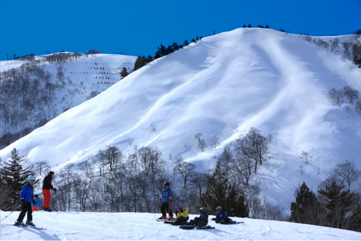 超広大なスキー場であるために、中上級者にオススメのコースを挙げたらキリがないのだが、八方が昨シーズンより新たに提案する「ファミリーで楽しめるゲレンデ」という側面にも注目したい。たしかに八方はビギナーやキッズが楽しめるコースばかりではないが、自分の滑りも家族との時間も譲れないスキーヤー・スノーボーダーは多いだろう。ならば、同じスキー場内でそれぞれに楽しめるエリアがあるにこしたことはない。そんな家族連れにうれしいのが「咲花ゲレンデ」と「なきやまスノーランド」だ。