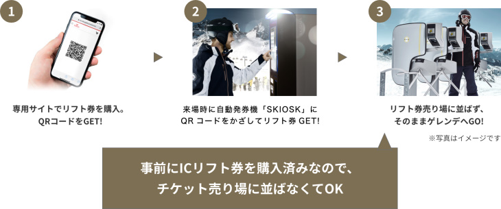 2カ所のベースエリアにキッズ向けエリアを設置することで、混雑緩和し利便性もアップしているが、朝いちのチケットを買うための行列はどうだろうか? 滑る前から疲れてしまいそうな長い列の待ち時間を解消するため、各チケット売り場には自動販売機(SKIOSK)が設置されている。事前にオンラインで購入しておけば簡単にリフト券と引換することができ、2回目以降は手元の使用済リフト券にチャージするだけでそのままリフトへ直行できる優れもの。便利なうえにお得、さらにエコなウェブチケットを使わない理由はない。
