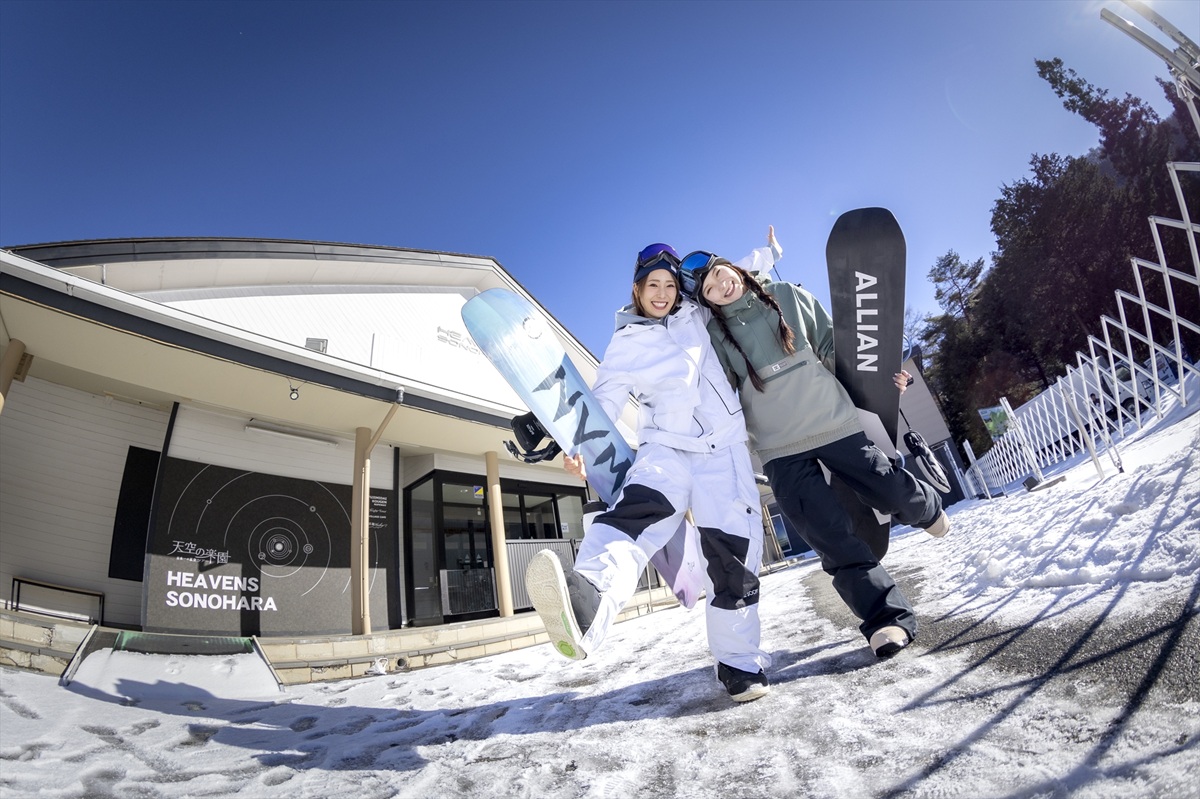 長野県の南部、阿智村にある『ヘブンスそのはら』は岐阜県との県境付近に位置し、名古屋からクルマで約1時間とアクセスがよく、日帰りにも便利なスキー場だ。1996年のオープン以来「スキー専用」で営業を続けてきたが、今シーズンより待望のスノーボード滑走が解禁になっている。