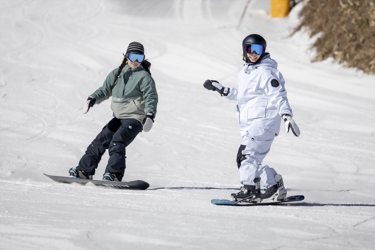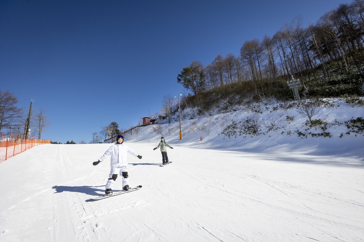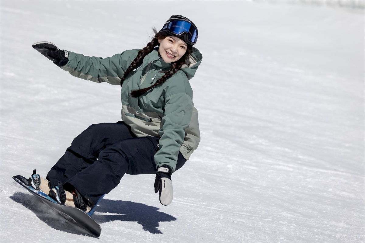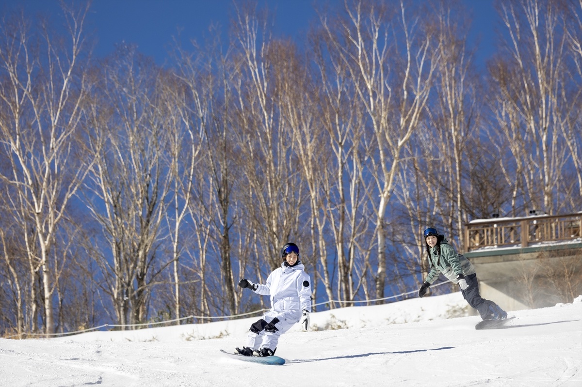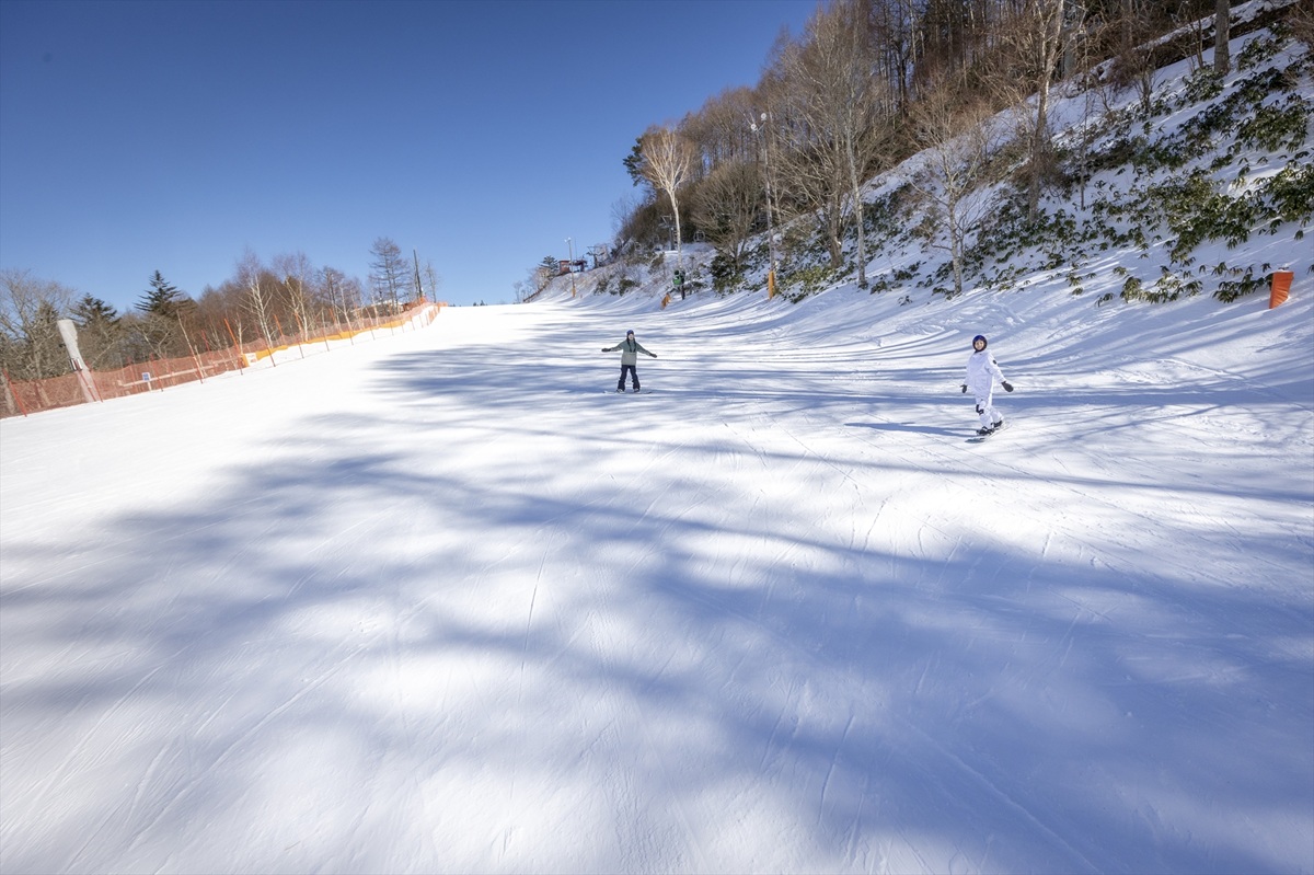 トップの標高が1600mと高いことから雪質の良さや眺望は抜群で、晴天率の高さも魅力のひとつ。この素晴らしいゲレンデを、スノーボードで思う存分に楽しむことができるのだ。