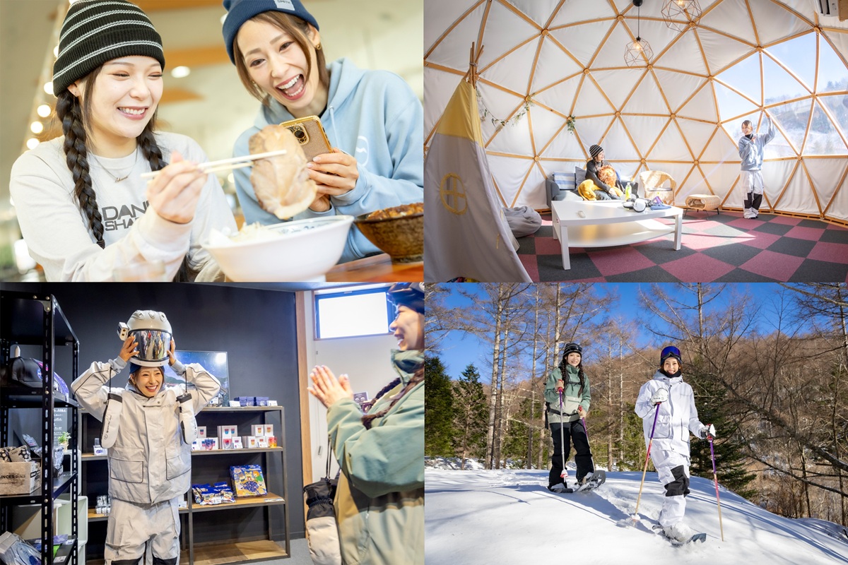 滑る楽しさはもちろんスノーシューなどのアクティビティも充実。ボリューム満点のゲレ食や珍しいお土産品(写真のヘルメットは非売品)など、気になる話題がいっぱいのヘブンスそのはらを、トコトン満喫しよう!