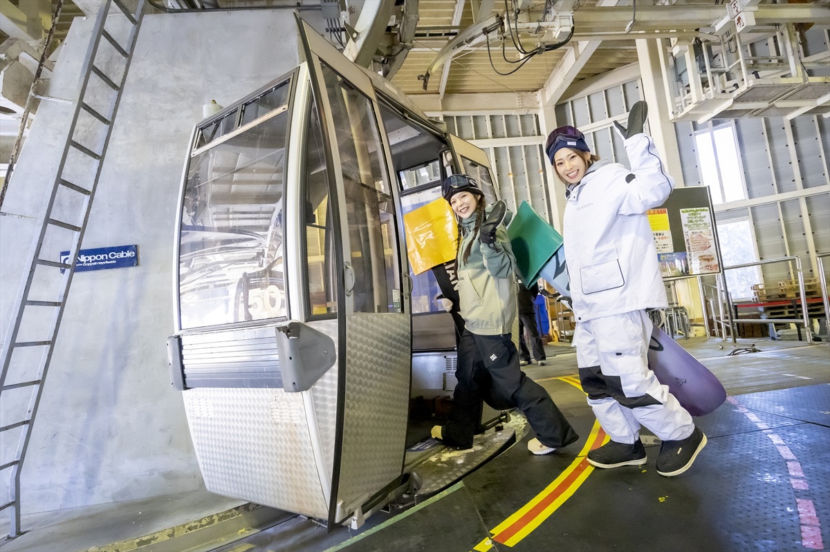 雪質、眺望抜群のゲレンデへは、標高800mのゴンドラ山麓駅から12人乗りのゴンドラを使って標高1400mの山頂駅までアプローチ。