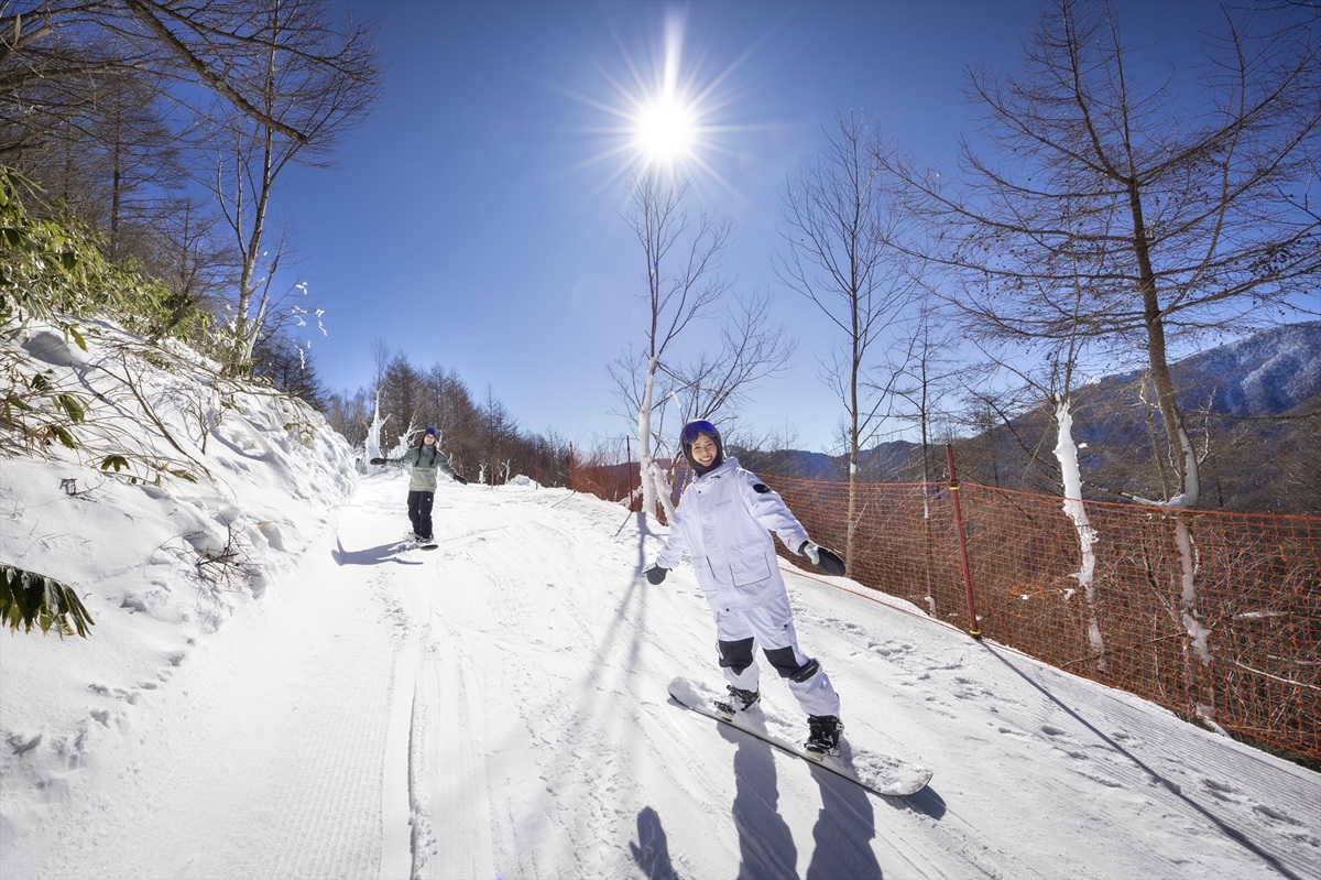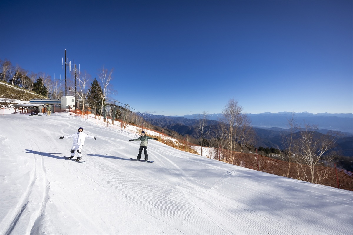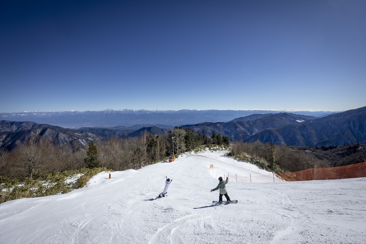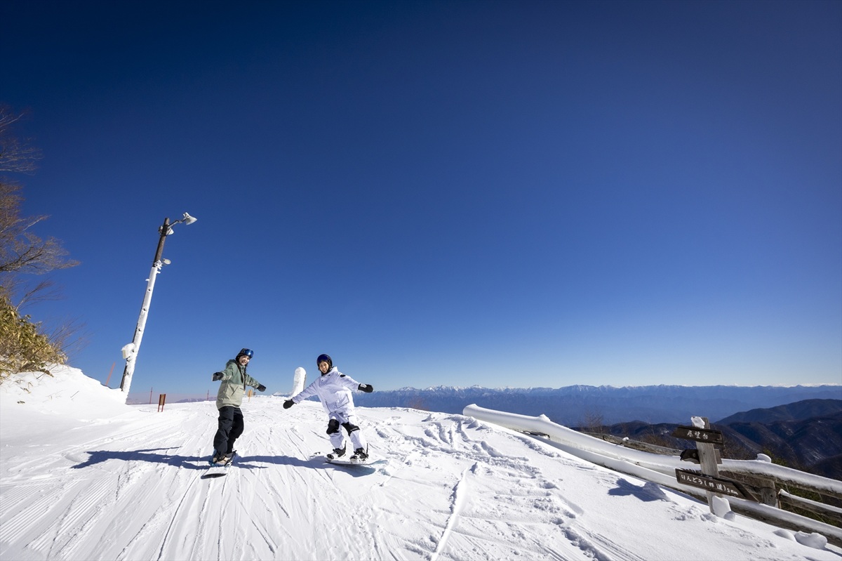名古屋からクルマで約60分、中央道・園原ICを降りてわずか5分でアクセス可能。ゴンドラで標高1400mにある山頂駅まで上がったエリアに、初心者から上級者まで楽しめるコースを用意。ゲレンデトップ標高1600mから望む絶景は感動もの。今季よりスノーボードが全面解禁となり、雪遊びゲレンデ「キッズワールド」もリニューアル。美人の湯で評判の昼神温泉にも近く、滑った後の温泉も楽しめる