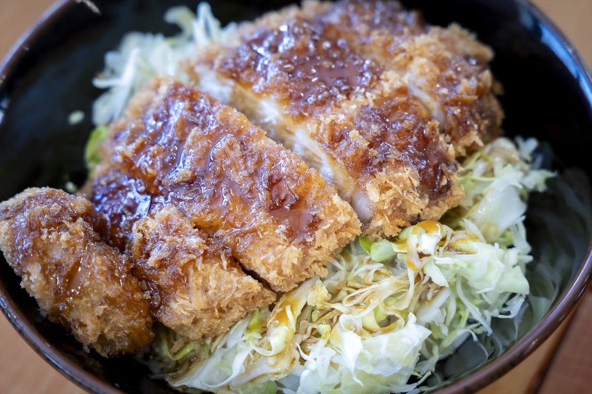 ランチのおすすめは、まずは味もボリュームも満点の南信州の名物「ソースカツ丼」。トンカツはサクサクの衣に包まれ甘みを感じる豚肉に相性抜群のしょっぱめのソースがかかり、ご飯とキャベツを絡めて口いっぱいにほおばれば、幸せ確定!