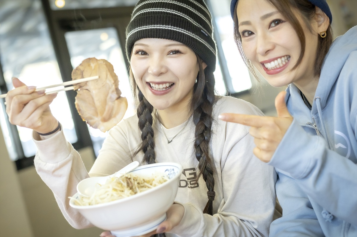 さらにヘブンスそのはらで、ぜひ食べてもらいたいのが、第6回信州チャンピオンメニュー決定戦(2018-19シーズン)のゲレ食バトルで優勝したラーメン「ヘブ二郎」だ。ラーメン二郎のインスパイア系でニンニクが効いた豚骨醤油のスープに極太麺、そして超巨大なチャーシューのガッツリ系ラーメンだ。一日限定20食なので、ぜひ売り切れる前にチャレンジを!