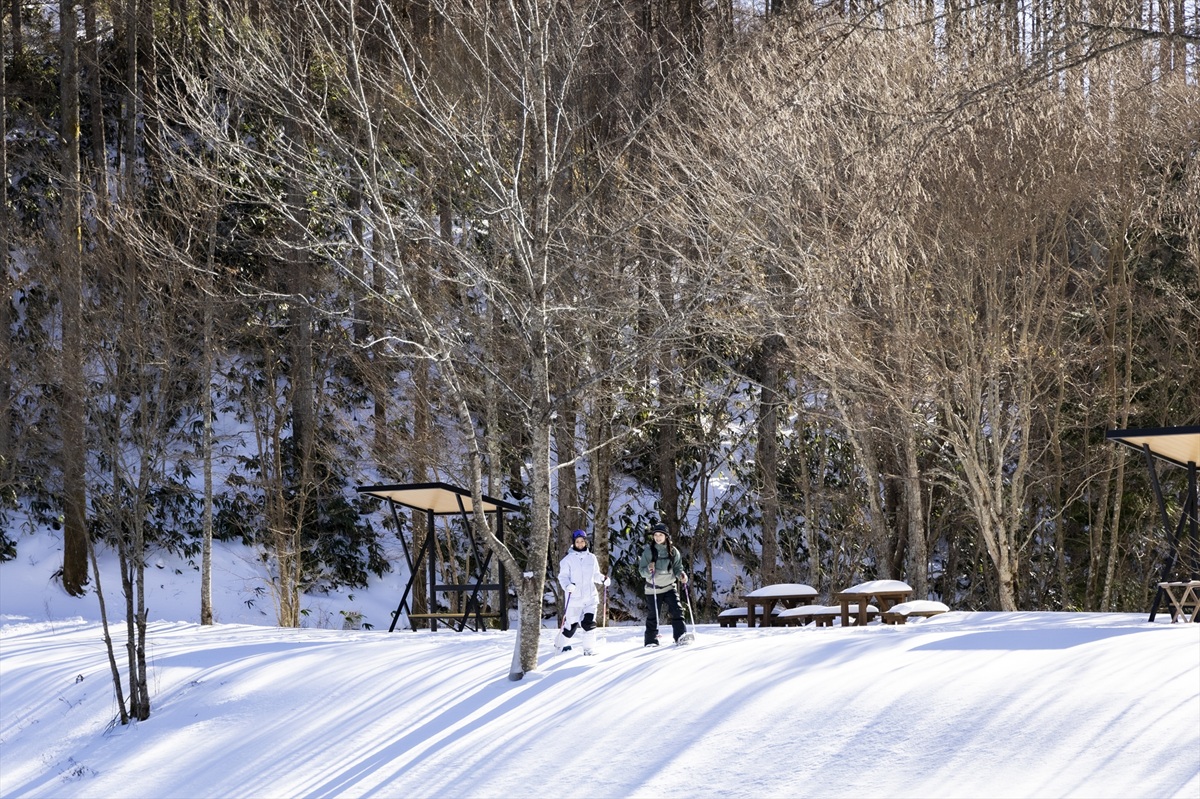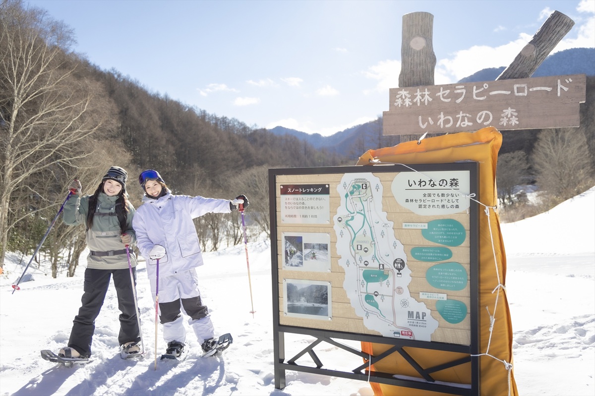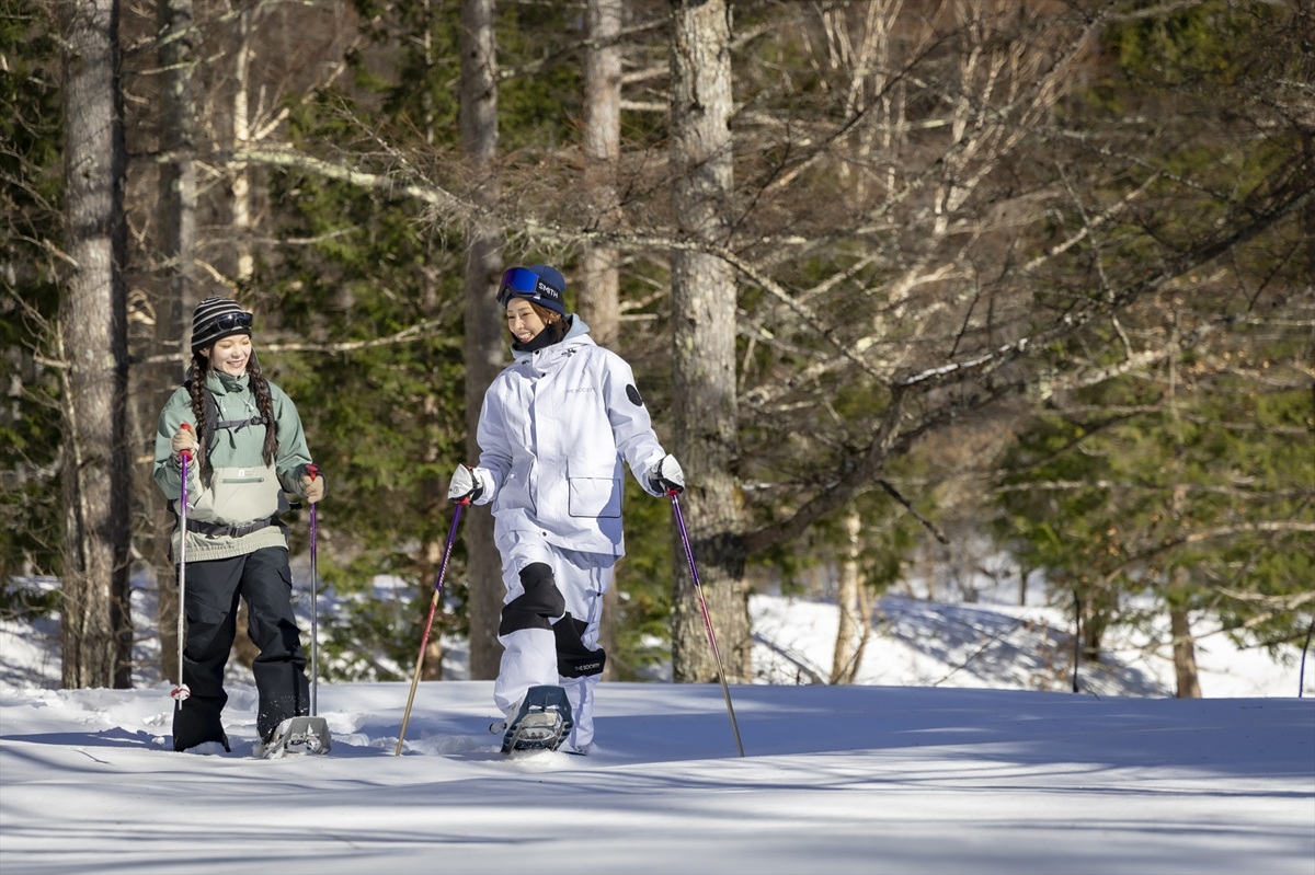 スノーシューで雪の上を歩いて、冬ならではの景色や雪の感触を楽しもう。スノーボードやスキーとはひと味違った思い出を残すことができるはずだ。いわなの森コースの1周は約1時間ほどが目安。スタート時間にもよるが、ゆっくり時間をかけて写真も撮りながら散策してくるのがおすすめ。