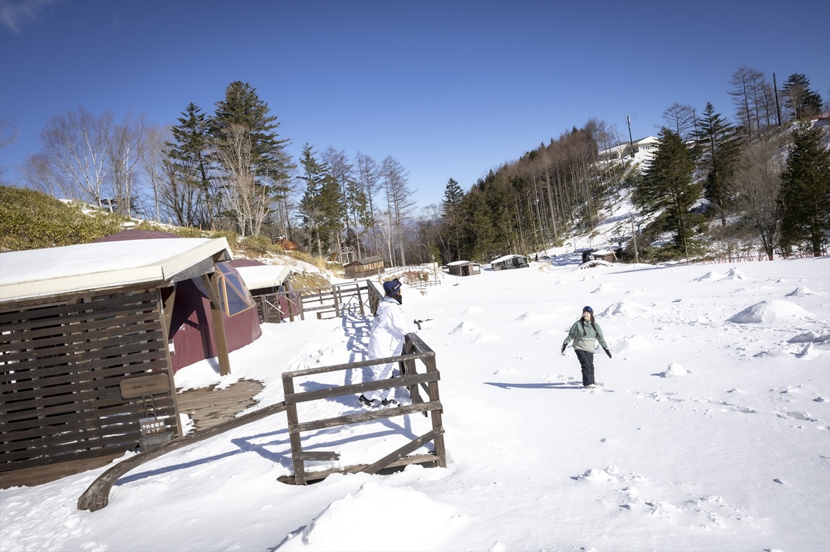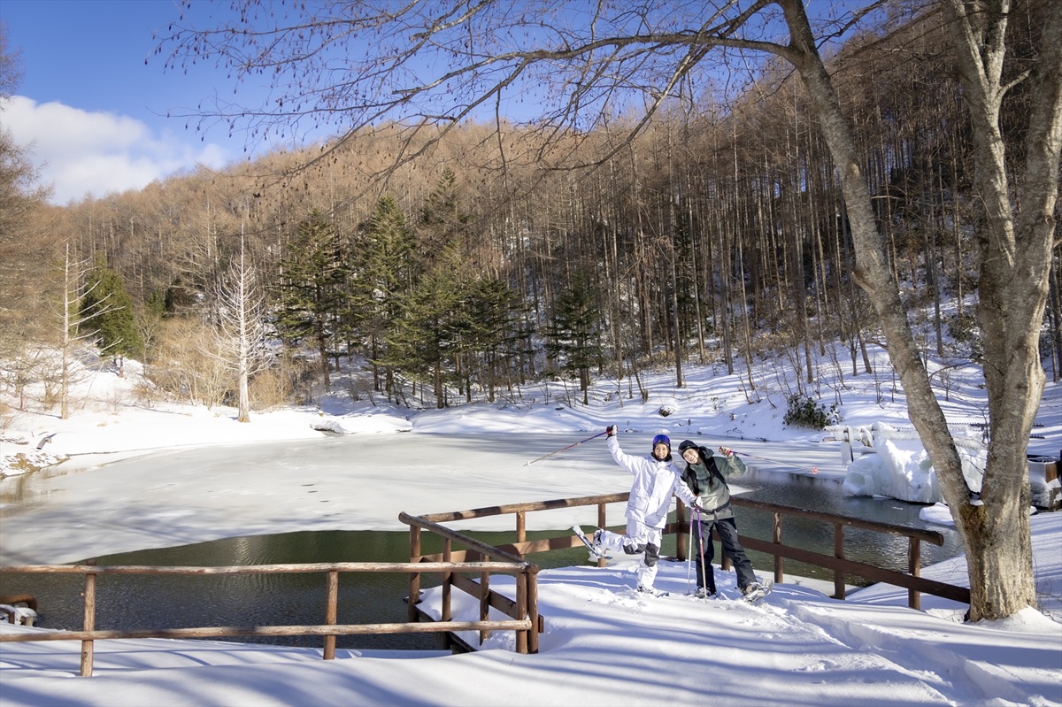 ヘブンスそのはらではスノーシューでスノートレッキングを楽しむ人も多い。スキー場の管理区域外をガイドと楽しむ本格的なコース(事前予約制)もある「富士見台高原」エリアと、誰でも気軽に楽しめる「いわなの森」エリアの2コースがあって、マウンテンロッジではスノーシューの道具一式をレンタル(有料)している。