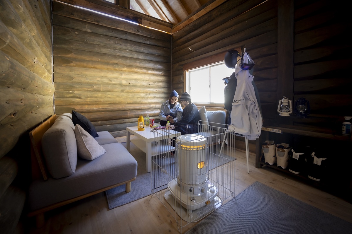 室内は山小屋そのものの落ち着いた雰囲気、暖房も完備で雪降りの日には手袋やビーニー、ウエアも乾かすことができる。基本的にセンターハウスで購入した食事や飲み物などは室内で飲食OKだ。