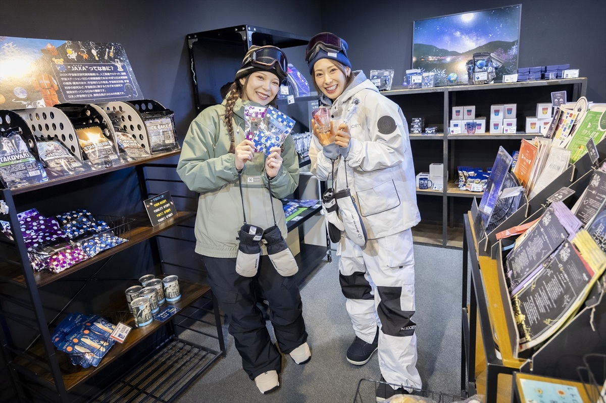 お土産の品揃えも充実。地元の特産品はもちろん、注目はスターショップコーナーの星や宇宙に関連したテーマとしたお土産品。JAXA(宇宙航空研究開発機構)商品など、他のスキー場にはお目にかかれないお土産品を販売している。