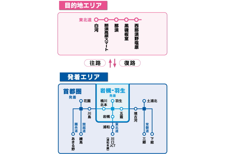 上記の青枠内にあるICであれば、発着エリアとしての対象内。「ハンタマ」への最寄りICとなる「西那須野塩原IC」も目的地エリアとして対象になっている。