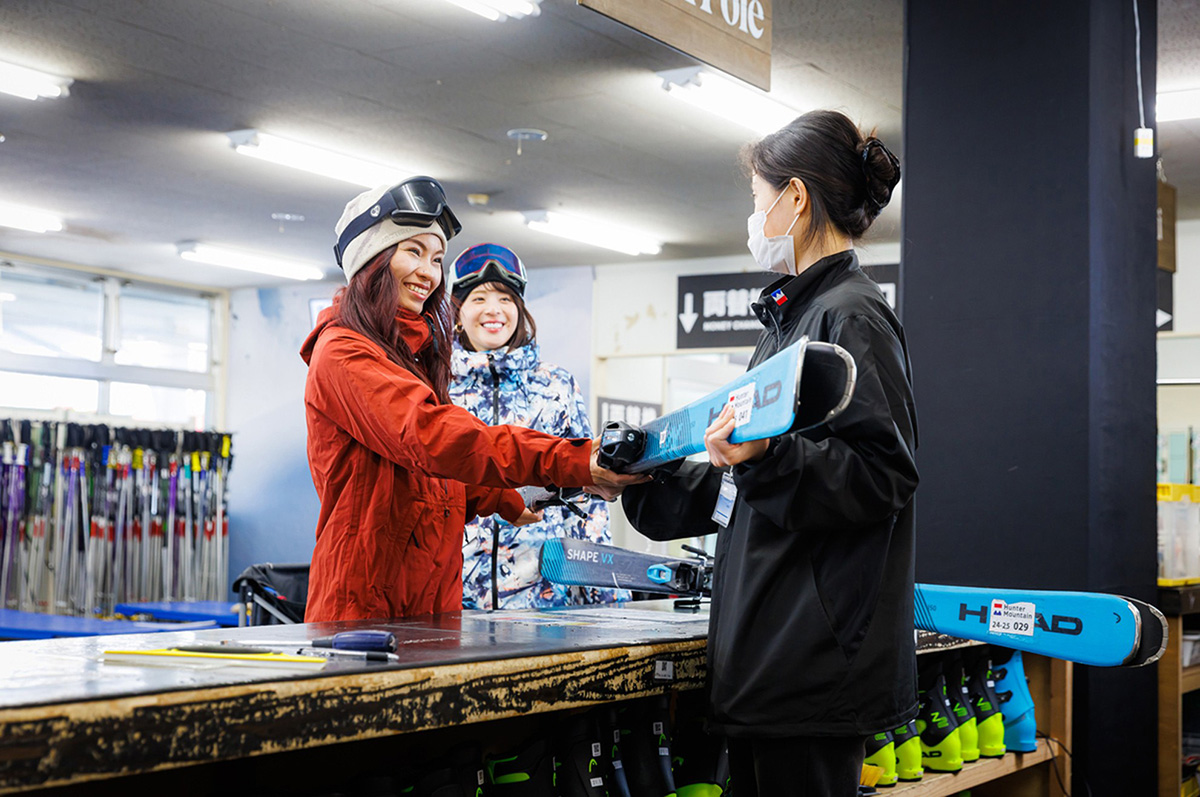 レンタルを希望する際はWEB事前申込を利用すると、QRコードを使った受付でスムーズにレンタルでき、到着後すぐに滑走を始められます。