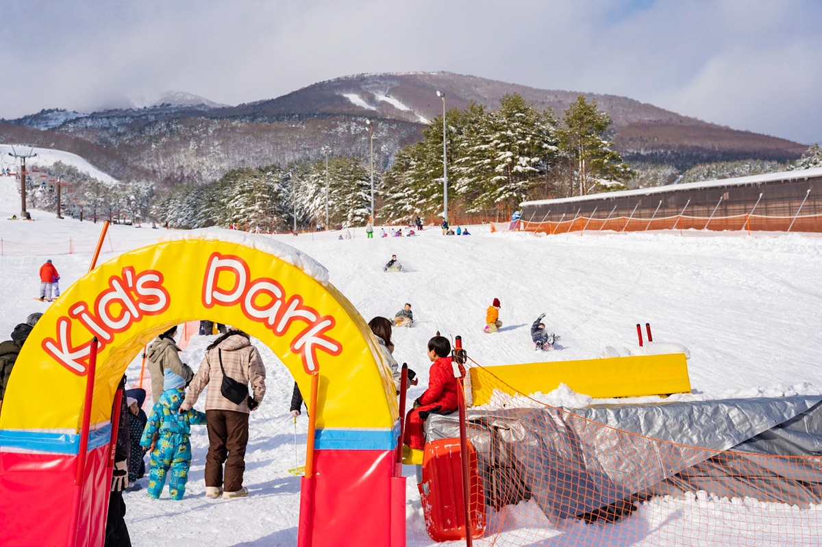 キッズパークは中央ゲレンデセンターハウスばんだい前にあり、フード付きの動く歩道を誰でも無料で利用できる。そり遊びや初めてのスキー&スノーボードの練習に最適で、そり・チュービング、ストライダーなどのレンタルも。種類豊富な乗り物のレンタルはで1日1,000円で途中交換OKなので、飽きずに雪遊びが楽しめる。