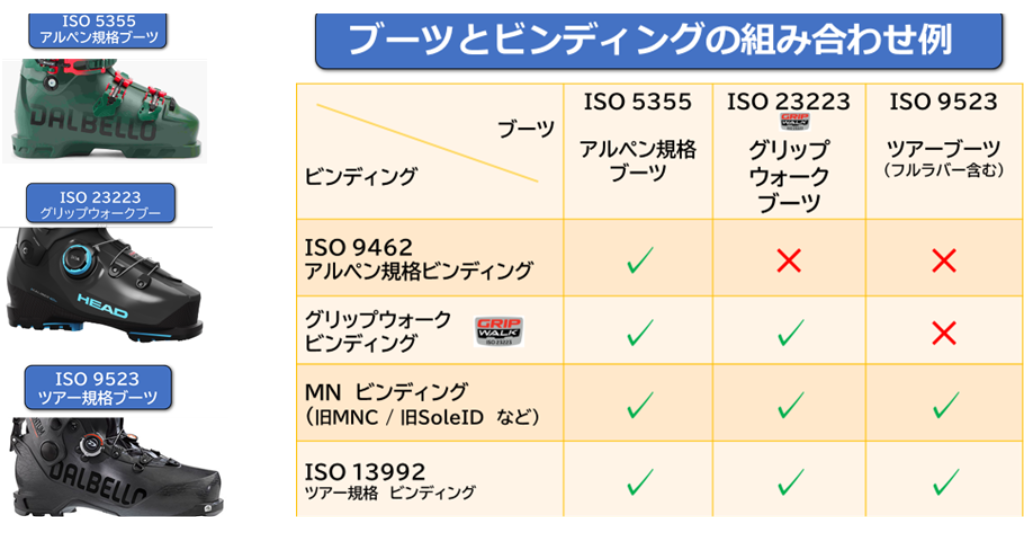・ビンディングをブーツの組み合わせとして正しい組み合わせであるか。