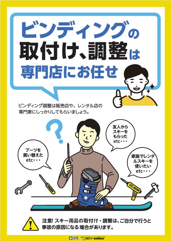ブーツとビンディングの組み合わせが正しくないことを知らず、滑走中に転倒して大けがを負ってしまった・・・