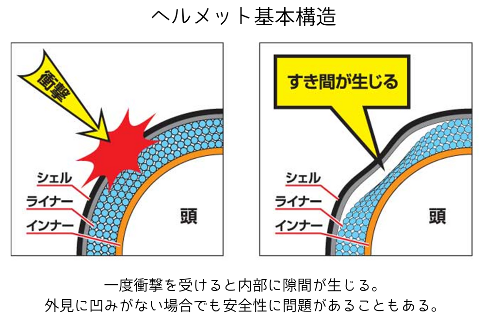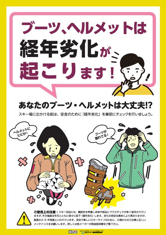 ・ブーツやヘルメットは経年劣化の対象期間を過ぎていないか。
