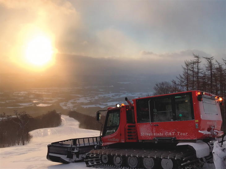 雫石スキー場では、雪上車で山頂付近まで上がる「CATツアー」を開催。