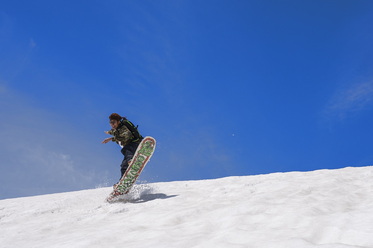 白い雪山と青空に映えるメッセージ性の高いブレインデッドのアートとスタイルの融合