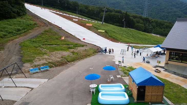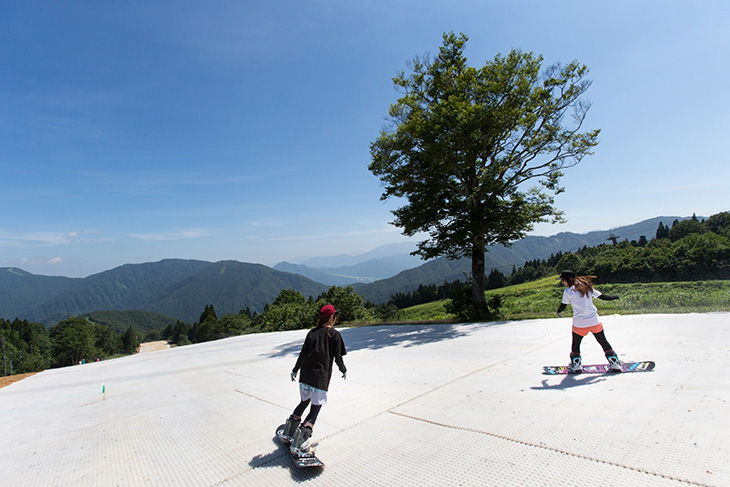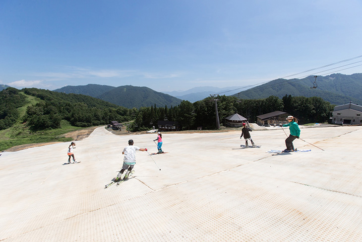 ウインターシーズンにはファミリーコースという名称で親しまれているサマーゲレンデは、全長約1,100mのコース上に専用マットが敷き詰められ、サマーゲレンデの滑走距離としては国内最大級を誇り、コース幅も最大で50mとワイド。