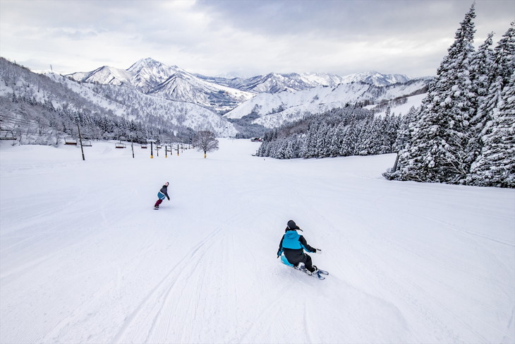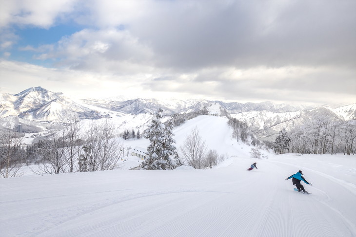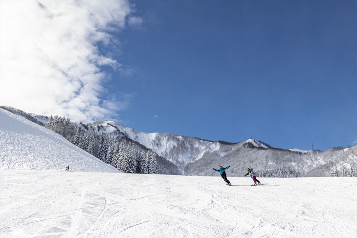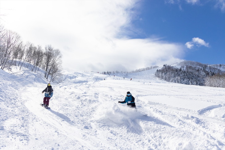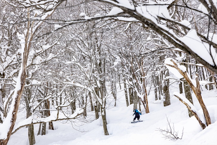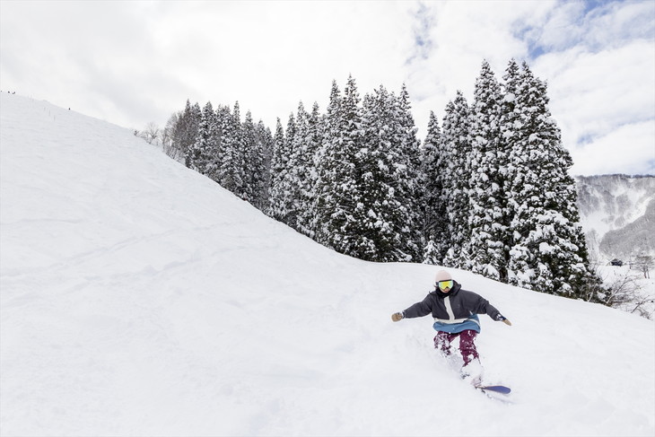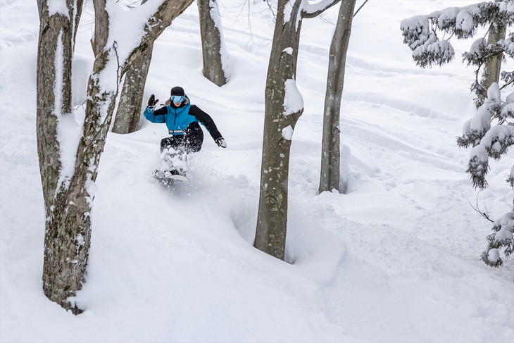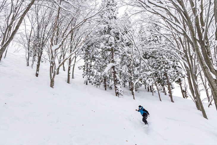 標高はピークで1000mと、それほどの高さではないにも関わらず雪が溜まりやすい地形で、ディープなパウダー滑走を楽しむことができる。