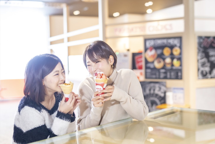 私はGROUND BASEの1階にある「SNOW CAFÉ(スノーカフェ)」の、密かに人気が上昇中の「焼き芋」もおすすめしちゃいます。クレープを食べるより、自然な甘さでちょっとヘルシーかなって(笑)。
