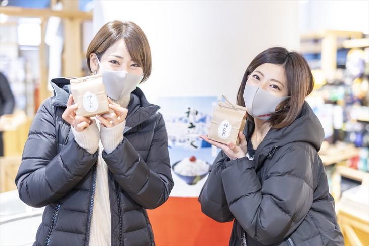 私がお土産におすすめしたいのは、地元で育てたお米「神立米」です。水の美味しい湯沢ならでは!神立内で作られているお米なんです。本当に美味しいので、自宅に戻ったら炊いて食べてみてください。もらっても喜ばれると思います。