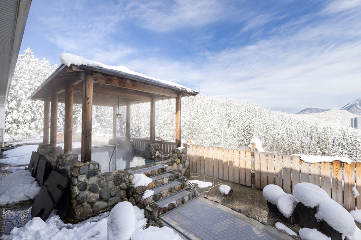 神の湯はGROUND BASEの4階にあって、雪景色を見ながらの露天風呂は気持ちいいですよ♡