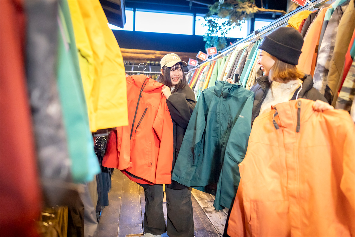 ウェアを選んだら、すぐ横に更衣室があるのですぐに着替えることができるので快適。自分のウェアを用意してきた場合はGROUND BASE 1階にある更衣室を利用しよう。