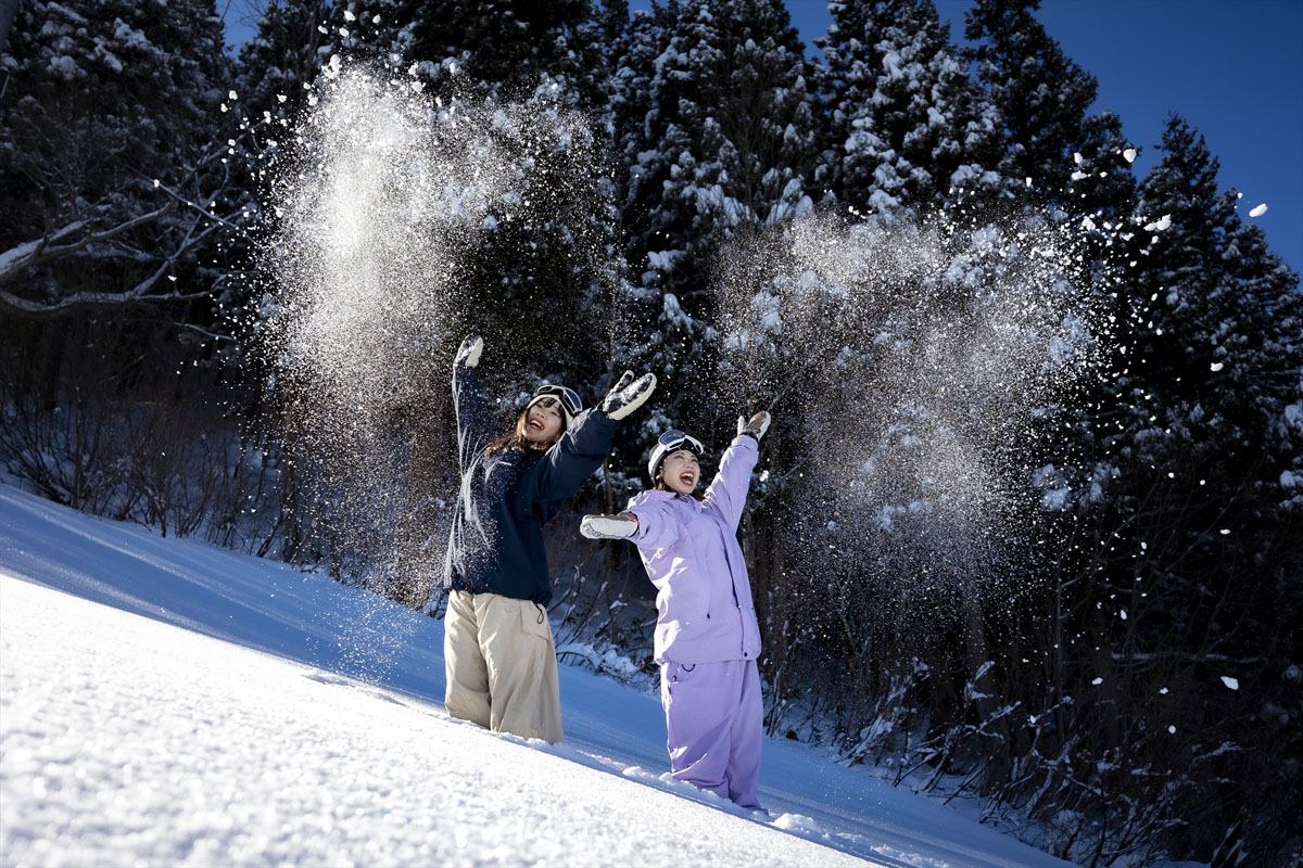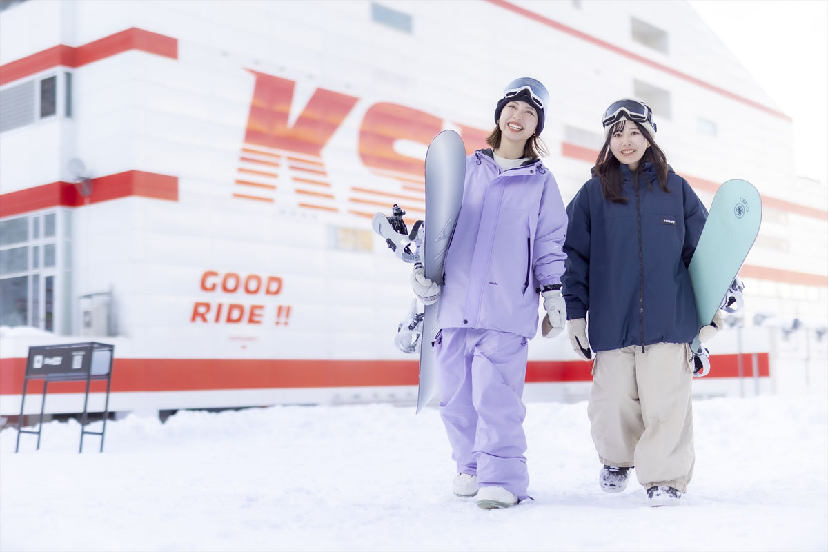 クルマでも新幹線でもアクセスがとても簡単でレンタルも充実。免許がないとか雪道の運転が心配、ウェアや道具を用意できてないというスノボ女子も気軽に遊びに行くことができる。