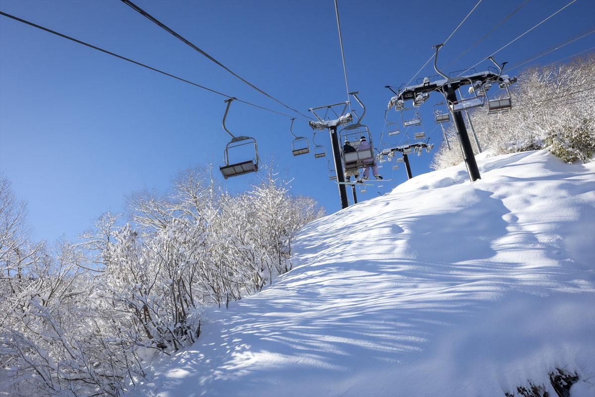 Aリフトに乗車してすぐは、まだゲレンデ全体は見えない。でもリフト下に気持ちよさそうな雪がふんわりと積もっていたり、木の枝に雪が付いているのを見ただけでも、不思議とテンションが上がってくる。