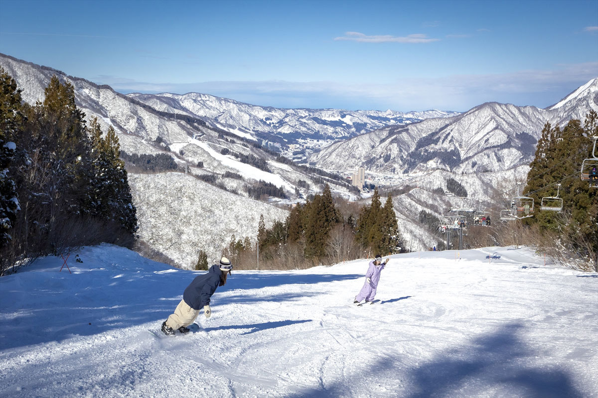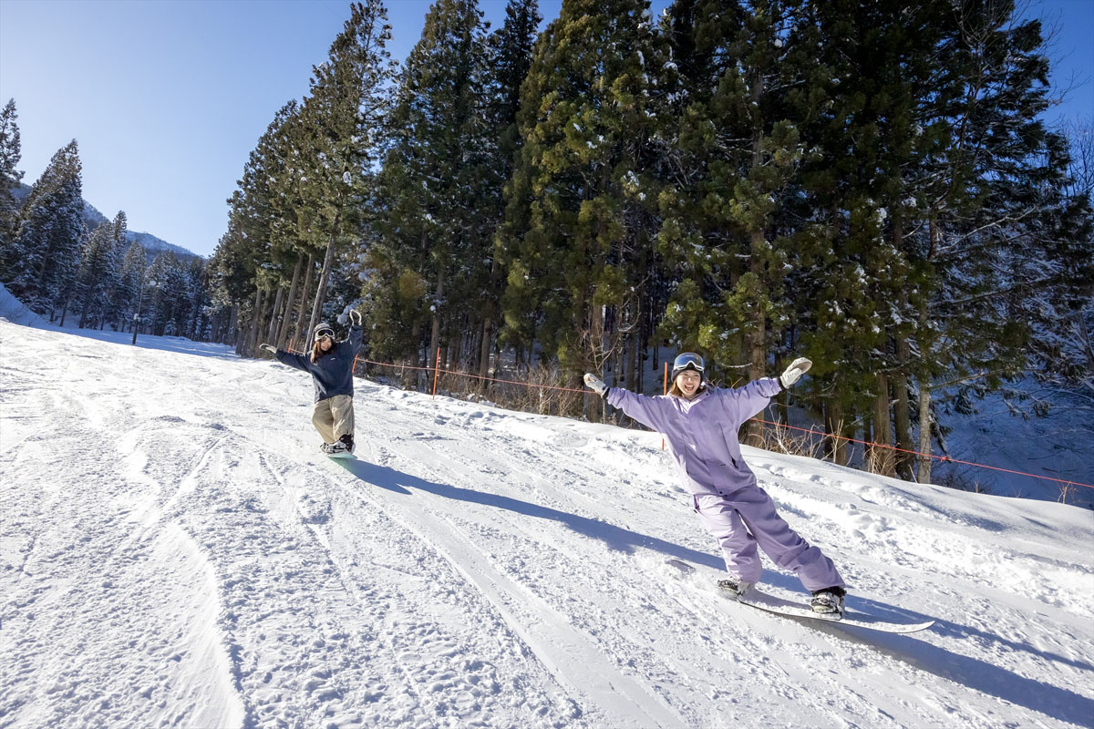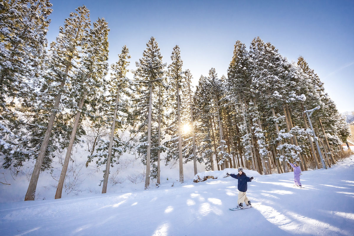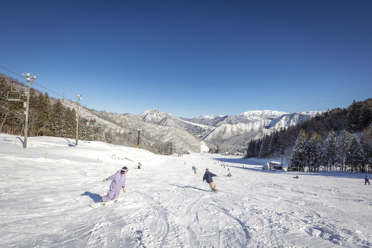 年齢や技術レベルに関係なく楽しめて、初めてのスノーボードにも自信を持っておすすめできる条件が揃っているスキー場といえば、新潟県の神立スノーリゾートだ。ゲレンデはすべて天然雪でバラエティ豊かな16コースを用意。どのコースも開放感たっぷりで眺望も抜群。