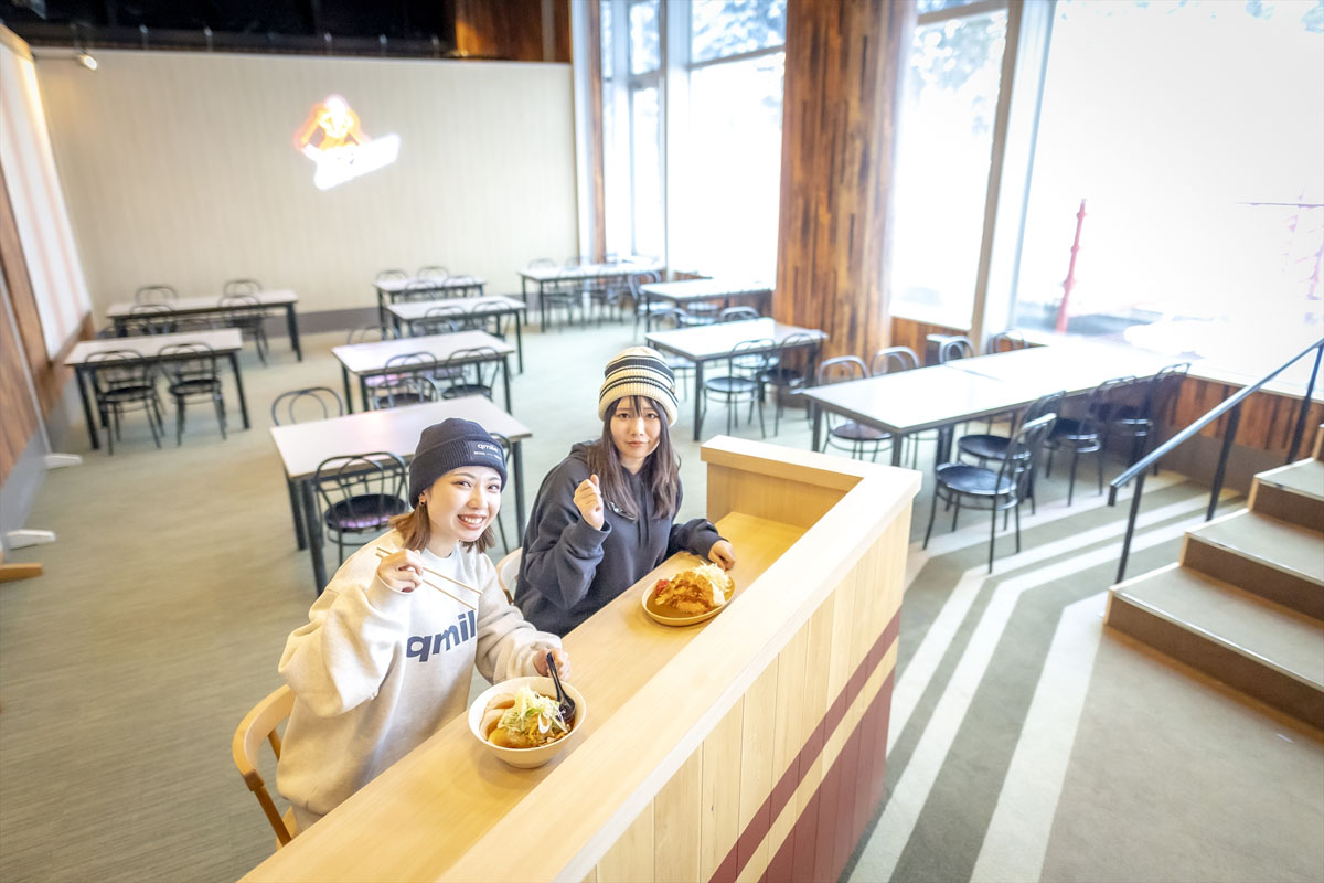 そしてスキー場のゲレ食と言えば定番のカレーライスとラーメン。レストラン「ペガサス」の新メニュー「名物!生姜ラーメン」と「BIGチキンカツカレー」は絶品の美味しさなので、ぜひ食べてみてほしい。