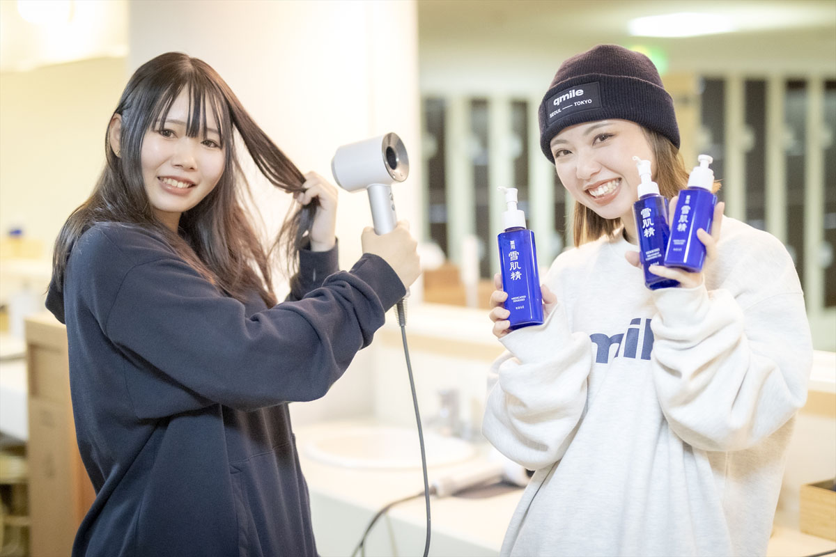 女性用の脱衣所には、髪を速く乾かせるダイソンのドライヤーが置いてあるので、ドライヤーの順番待ちも思った以上に早いと評判。化粧水や乳液には人気ブランド「雪肌精」を用意。