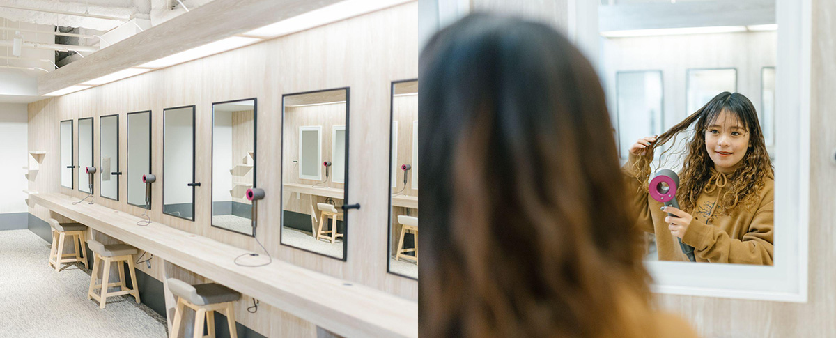 朝ごはんでエネルギーチャージしたら、さっそく更衣室へGO!広々とした清潔感あふれるスペースには、大きな鏡とダイソンのドライヤーが完備。ノーメイクでも落ち着いて準備できるから、安心です♡