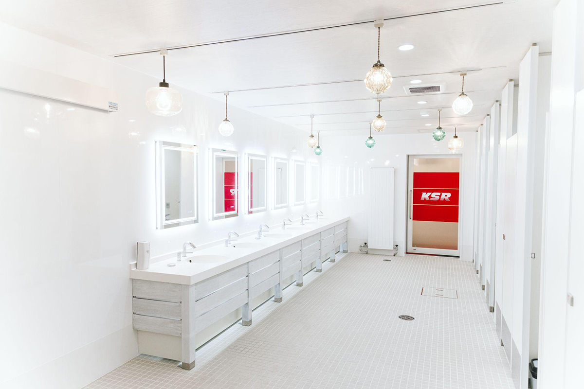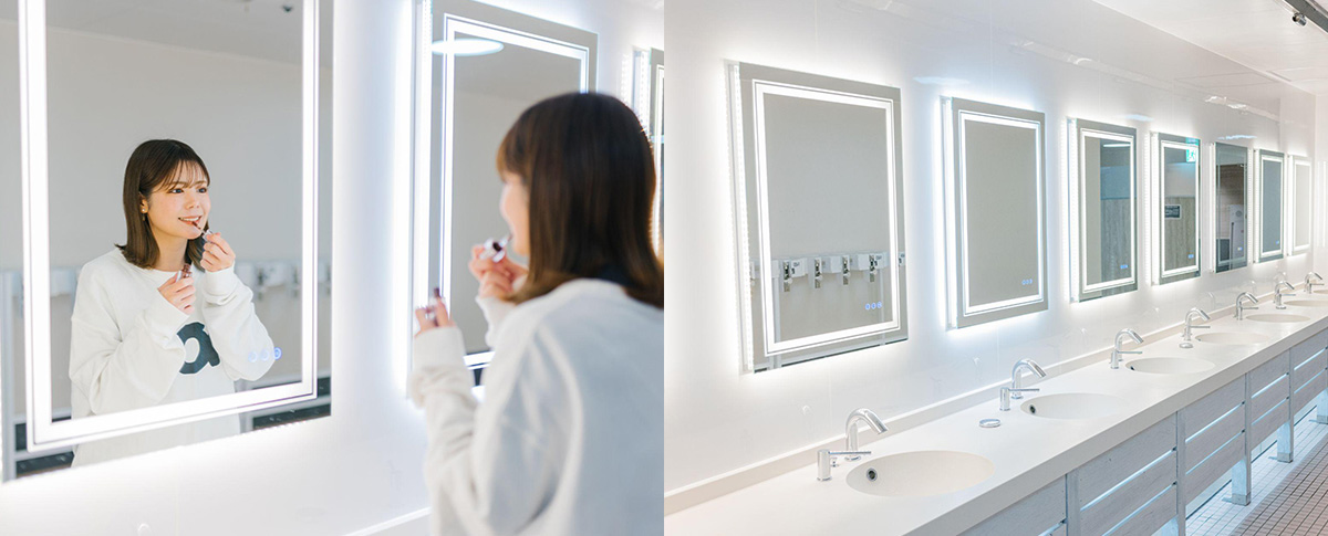 お手洗いの洗面台は、なんと全部女優ミラー仕様!滑る前のメイクはもちろん、滑った後のお化粧直しにもぴったり。女子の気持ちを完璧にわかってる〜!って思わず感動しちゃいます。