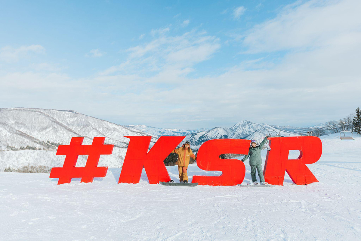 の前に、Cリフトを登ったところにある「#KSR」 のモニュメントの前でパシャリ。