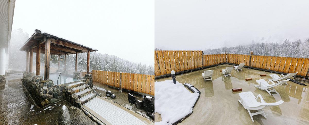広々とした開放感のある内風呂と露天風呂。いっぱい滑ってパンパンになった脚も、温かいお湯で一発でスッキリ!のんびりと疲れを癒して、リフレッシュしちゃいましょう。